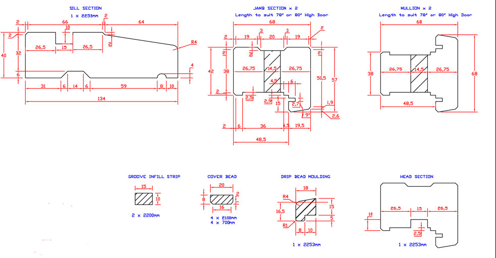 80" x 32" door + 1 x 80" x 23" sidelights = 2118 (h) x 1529mm (w)