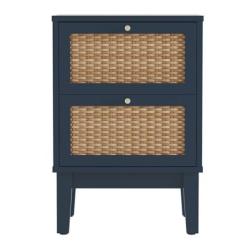 The Bordeaux bedside cabinet features a stylish rattan effect detail on the front panels, which exudes a warm, exotic feel. The satin gold fittings and handles shine against the deep blue frame, creating a sleek and elegant look. Complete with two drawers, this bedside provides ample storage space, making it a practical solution to any size bedroom.
