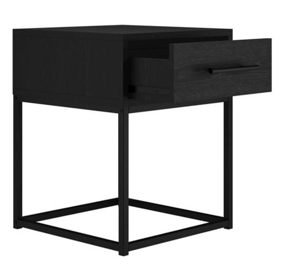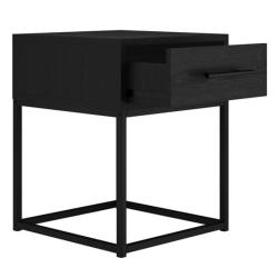 Introducing the Bray bedside cabinet, a sleek addition to your bedroom with a matte black finish and a handy drawer for storage. Its neutral colour and metal frame seamlessly fit into any design scheme, adding an industrial touch to your space.
