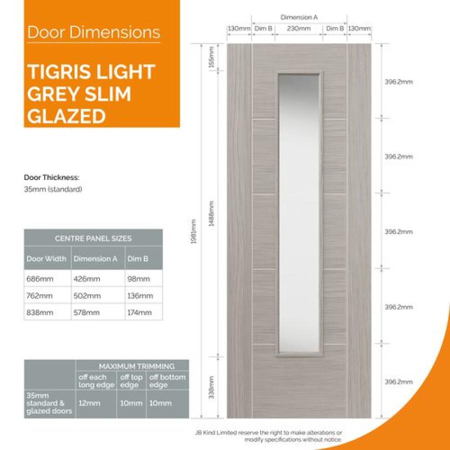 Tigris Light Grey Laminate Door with Clear Glass (slim)